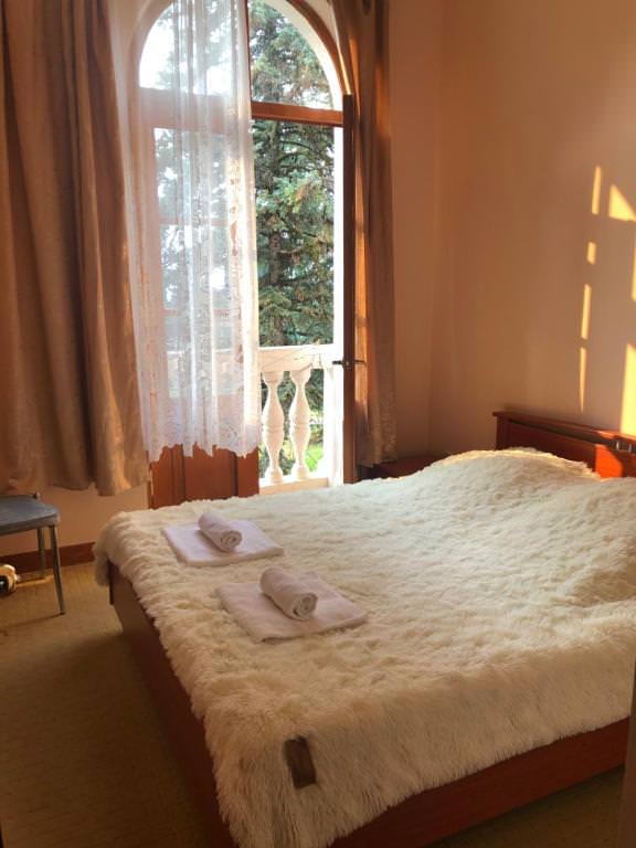 2 осн. места. Мебель: вешалка, зеркало, кровать двуспальная, прикроватные тумбочки, стол, стулья, шкаф. Оборудование: кондиционер, телевизор, холодильник. Санузел. Сервис: смена полотенец, смена постельного белья, уборка номера.